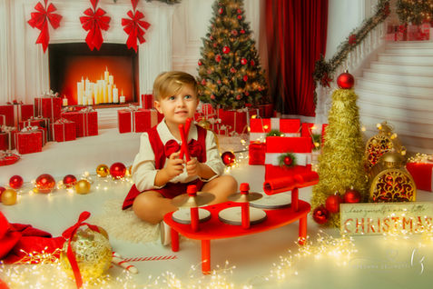 Nel mio studio fotografico i bambini possono divertirsi e respirare un 'atmosfera natalizia fatta di note musicali ... dal pianoforte alla batteria.